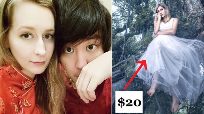 Ia mengambil foto istrinya dari beberapa angle menggunakan gaun murahan saat matahari terbit.
