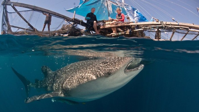 Bahkan, anak-anak di desa Kwatisore sangat akrab dengan hiu paus ini.