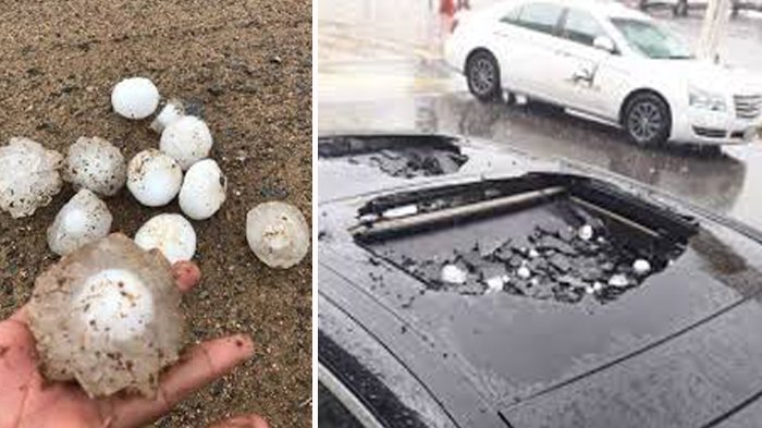 TRIBUNTRAVEL.COM - Hujan es sebesar bola golf menghujam Arab Saudi.