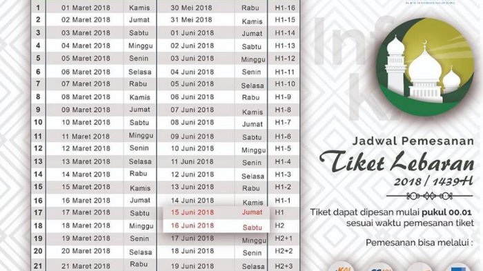 Artinya, tiket kereta api untuk musim Lebaran 2018 bisa dibeli pada Kamis, 1 Maret 2018 kemarin, sebagaimana dikatakan Edy Kuswoyo, Senior Manager Humas Daop 1 Jakarta PT KAI.