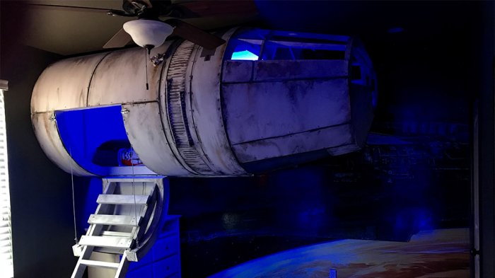Dericrw, seorang ayah yang kreatif mendesain sebuah kamar tidur berkonsep Millennium Falcon untuk anaknya.