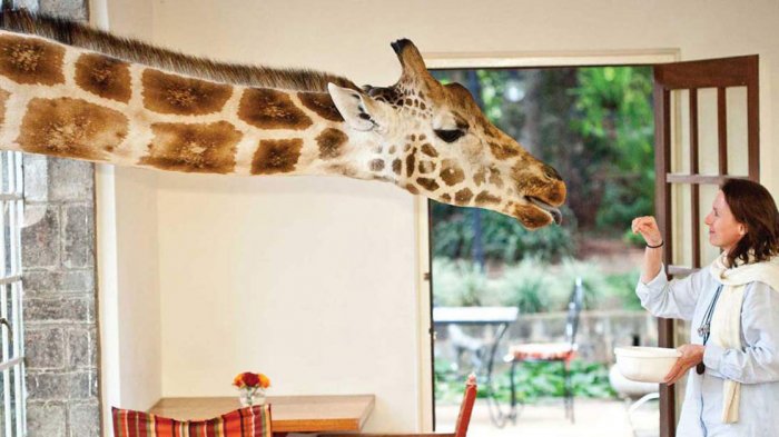 TRIBUNTRAVEL.COM - Bayangkan terbangun di Nairobi, Kenya, berjalan menuruni tangga hotel butik bergaya 1930an, untuk sarapan pagi dengan jerapah.