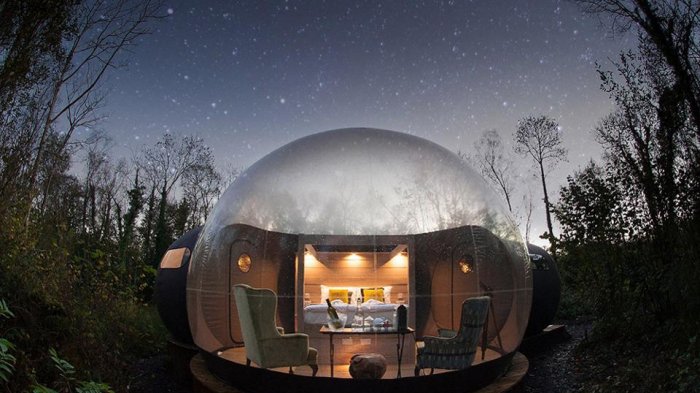Setiap kamar tersedia dalam gelembung transparan berbentuk igloo dan gelembung bola transparan.
