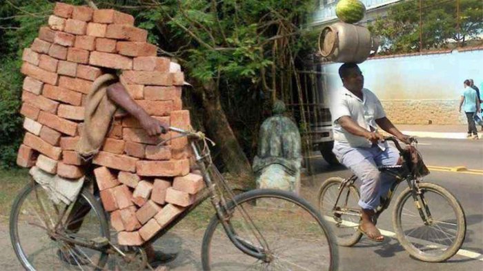 Namun beebrapa orang justru kreatif sekaligus nekat dnegan memaksakan barang-barangnya diangkut dengan kendaraan seadanya hingga over muatan.