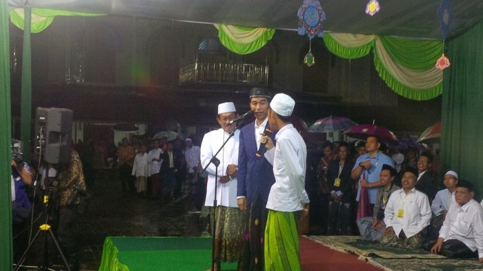 TRIBUNTRAVEL.COM - Presiden Joko Widodo kembali memberikan kuis saat melakukan kunjungan silaturahmi ke Pondok Pesantren Langitan, Tuban, Jawa Timur, Kamis (8/3/2018).