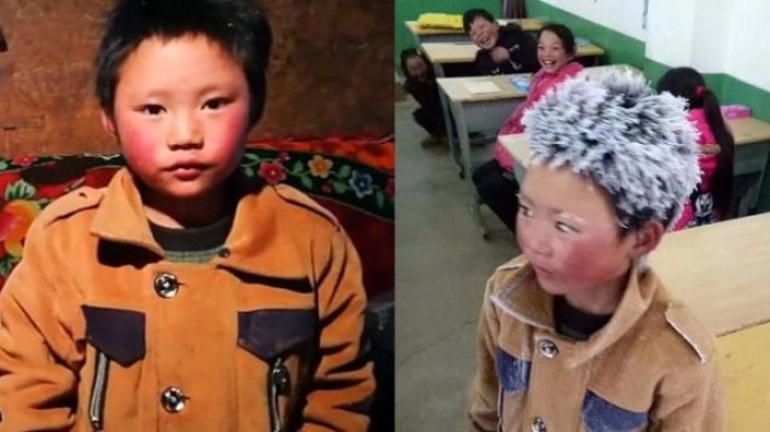 Bocah berusia 8 tahun dari Provinsi Yunan, China, itu menjadi mendunia gara-gara rambutnya diselubungi es.