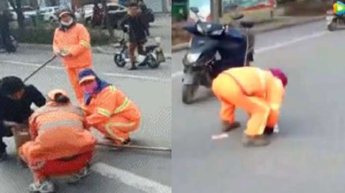 Mengetahui hal itu, petugas penyapu jalan kemudian memunguti uang milik Qian.