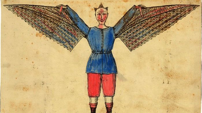 Beberapa tahun setelah Leonardo da Vinci merancang pesawat terbangnya, John Damian dari Skotlandia membuat sepasang sayap yang ditempeli bulu-bulu.