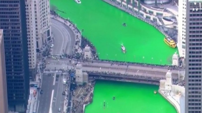 Untuk merayakan hari tersebut, para pejabat di Chicago, Amerika Serikat mengubah Sungai Chicago menjadi hijau terang yang tampak segar.