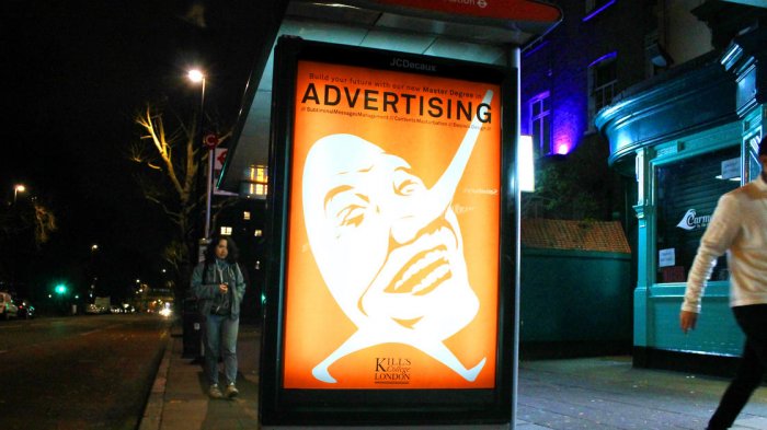 Seorang seniman Italia bernama Horge, secara ilegal membajak papan reklame di London.