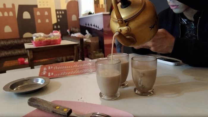 Adalah teh Adani, yang merupakan racikan dari rempah-rempah dan susu.