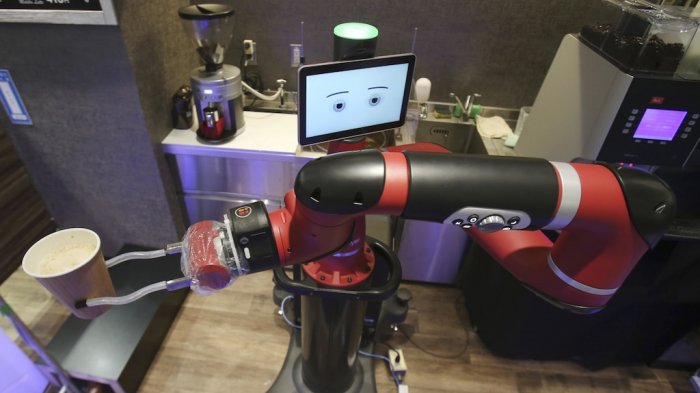Uniknya, di kafe ini penjualan dan penyajian kopi dilakukan oleh robot.