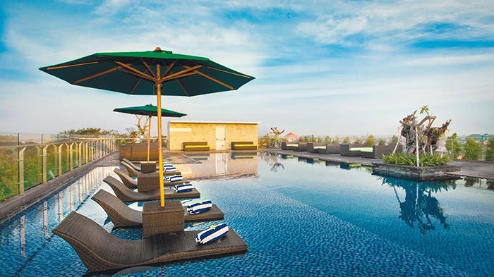7 Clover Sky Bar menjadi spot terbaik menikmati panorama bandara Ngurah Rai, tol Bali Mandara, matahari terbit dan matahari terbenam yang indah.
