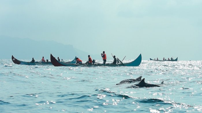 Tapi di sana menyimpan keindahan lumba-lumba yang sering muncul dan bermain-main di permukaan.