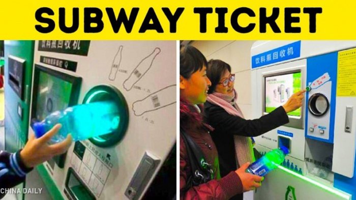 China misalnya memiliki vending machine yang menukarkan botol kosong dengan tiket kereta bawah tanah.