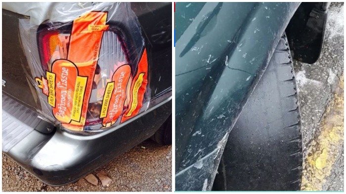 13. Mungkin si pemilik mencoba memperbaiki penutup lampu belakangnya sendiri sebelum akhirnya memutuskan membawanya ke bengkel.