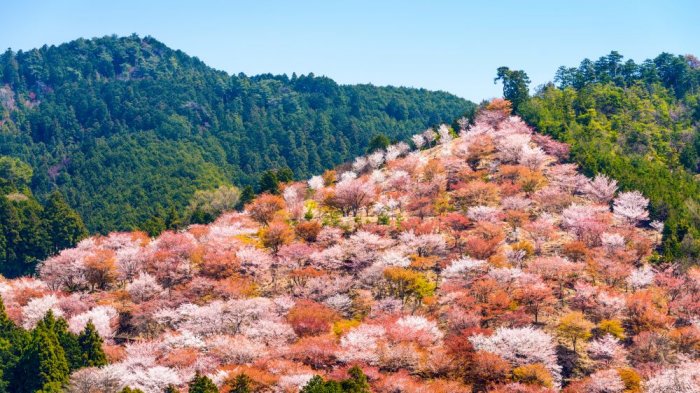 TRIBUNTRAVEL.COM - Di Gunung Yoshino, kota Nara, terdapat taman sakura bernama “Takami no Sato”.