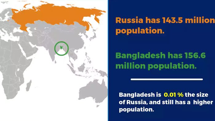 Padahal ukuran Bangladesh 0,01 persen dari Rusia.