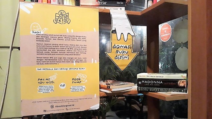 Rak itu berasal dari 'Book For Good' yang menyajikan berbagai macam jenis buku yang bisa dibaca sembari menyantap hidangan yang disajikan disana.