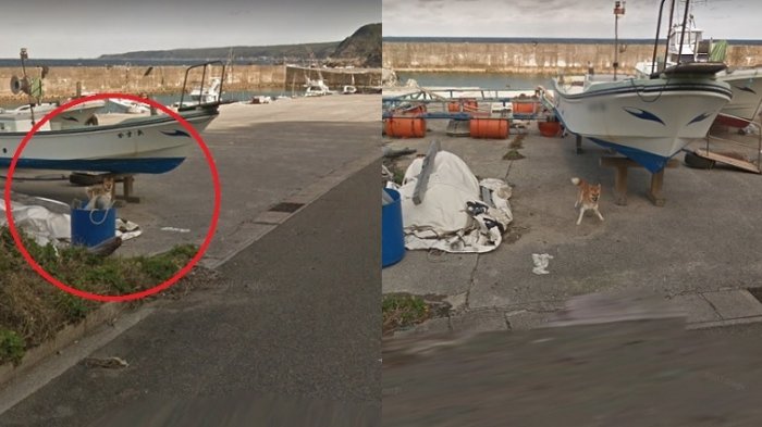 Setelah lewat, kamera tiba-tiba menangkap seekor anjing yang bersemangat dan tampaknya menjaga sebuah perahu kecil.