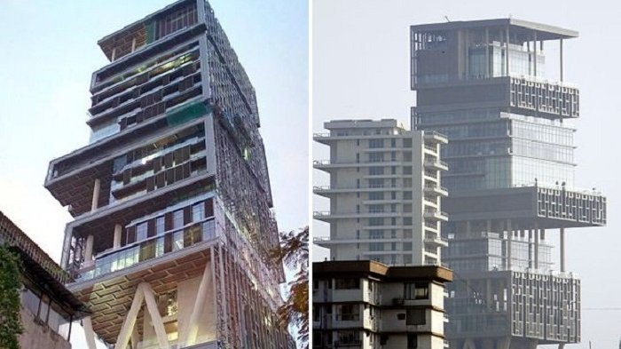 Bangunan berlantai 27 itu disebut Antilia yang merupakan kediaman pribadi Mukesh Ambani, Ketua Reliance Industries.