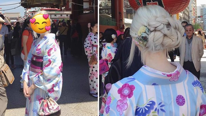 TRIBUNTRAVEL.COM - Gadis berambut silver mengenakan kimono ini tengah viral di media sosial akhir-akhir ini.