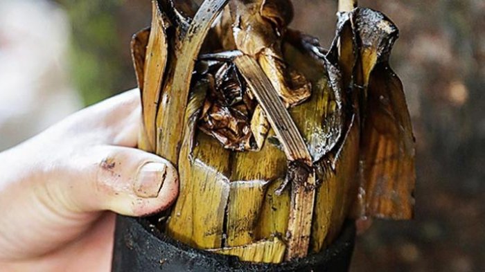 Makanan ini disajikan dengan bambu dan langsung dimasak menggunakan bambu dan biasanya disajikan bersama dengan sayur bulunangko atau pohon pisang yang masih muda.