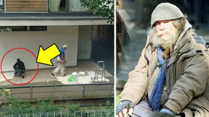 Pria tunawisma itu tampaknya sangat berterima kasih kepada dua pelukis yang baik hati yang bersedia memberinya pekerjaan.