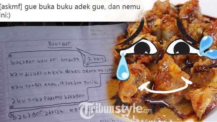 TRIBUNTRAVEL.COM - "Aku tak akan melupakanmu batagor. Kau selalu ada di sampingku" puisi batagor karya bocah ini jadi viral dan mengocok perut netizen!