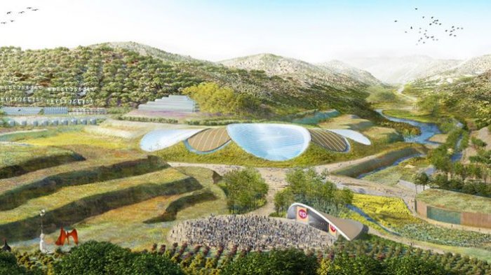 TRIBUNTRAVEL.COM - Grimshaw Architects telah merilis gambar pertama dari Proyek Eden di Qingdao, salah satu dari enam pos terdepan dari objek wisata ekologi Cornish yang sedang dikerjakan.