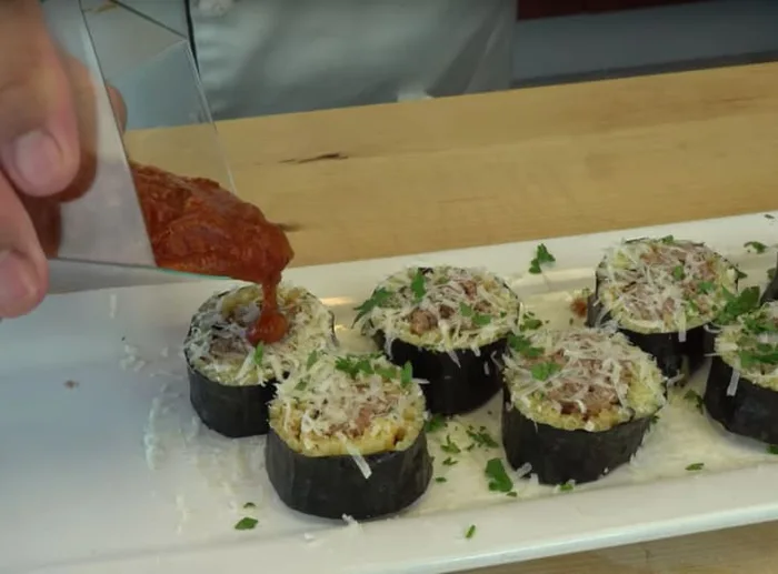 6. Sushi yang terbuat dari spaghetti meatballs, yang penting digulung dan dilapisi rumput laut ya.