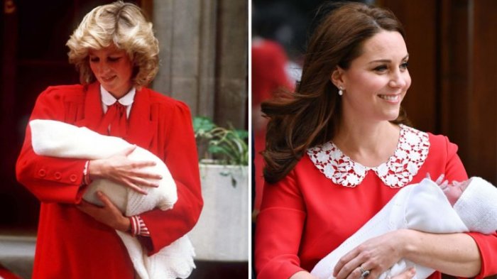 Setelah melahirkan putra keduanya pada 23 April 2018, Kate memberi penghormatan kepada Putri Diana dengan mengenakan pakaian yang sangat mirip.