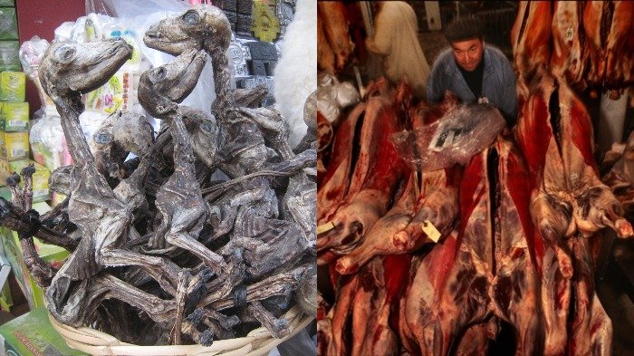 Sebuah pasar di Bolivia, menawarkan produk-produk yang sangat tidak normal dan sangat menjijikkan.