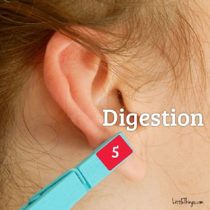 Tepat di atas cuping telinga adalah tempat yang paling sering dikaitkan dengan pencernaan.