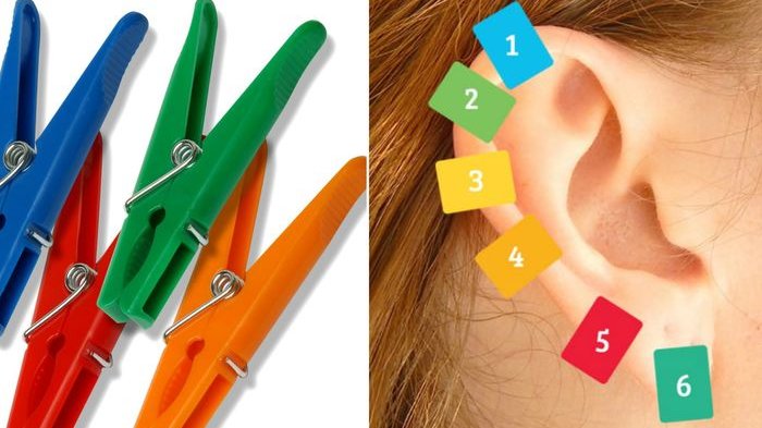 Penjepit jemuran bisa digunakan pada telinga untuk menekan titik-titik refleksi pada telinga.