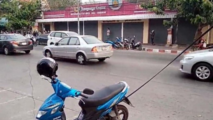 Ialah Maneenetr Charoenngao, 40, meninggal di jalan setelah lehernya menabrak kabel.
