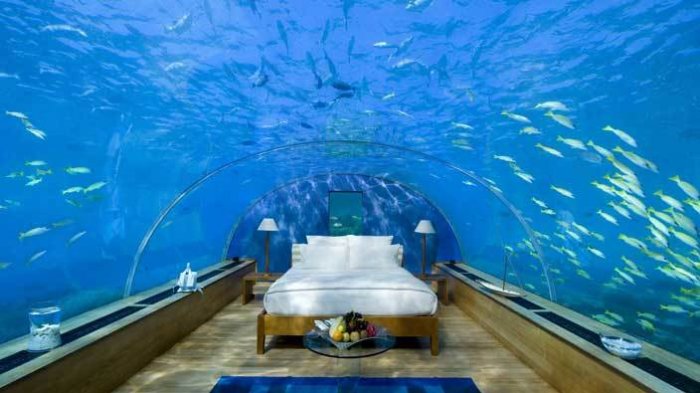 Satu hotel di sana menawarkan sensasi menginap di bawah Samudera Hindia.