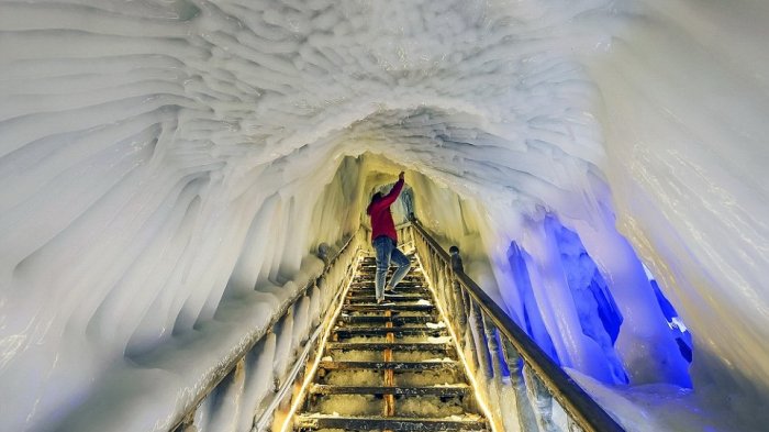 Saat suhu di luar naik dinding-dinding es di gua ini pun tak pernah meleleh.