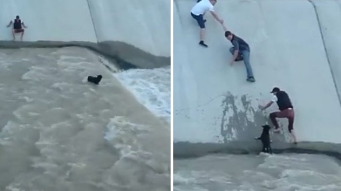 TRIBUNTRAVEL.COM - Apa yang akan kamu lakukan jika melihat seekor anjing terperangkap dalam waduk yang tercemar dan hanya beberapa sentimeter jauhnya dari arus kuat?