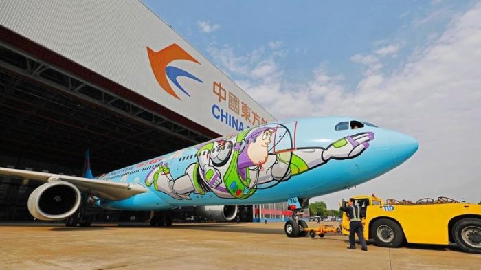 Tak berhenti di sekuel film saja, kamu bisa menjumpai karakter Disney "Toy Story" terpampang jelas menempel pada sebuah pesawat maskapai penerbangan di China.