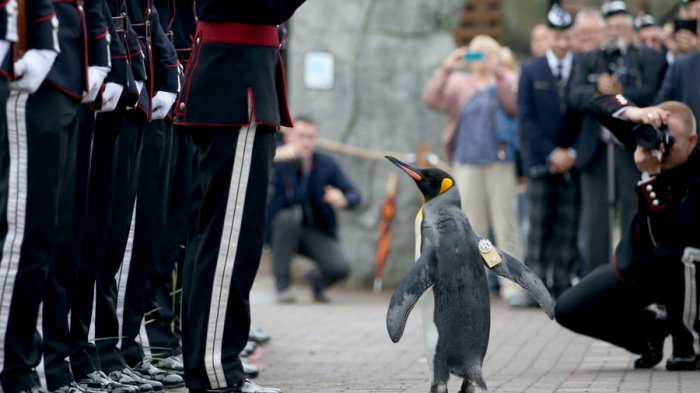 Jika kamu mengunjungi Kebun Binatang Edinburgh di Skotlandia, bersiaplah untuk memberi hormat kepada sang raja penguin.