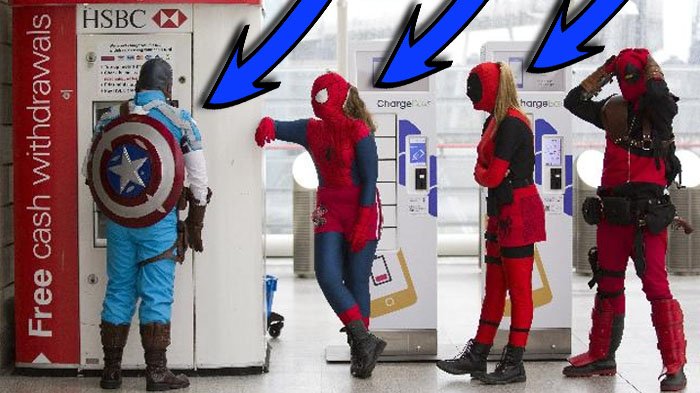 Mungkin sedang ada pesta kostum jadi para pengguna ATM smeunya mengenakan baju yang tak biasa.