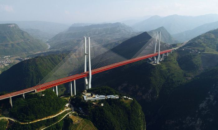 Jembatan Beipanjiang berdiri 564 meter di atas Sungai Beipan, pegunungan barat daya Tiongkok sehingga menjadi jembatan tertinggi yang pernah dibangun.