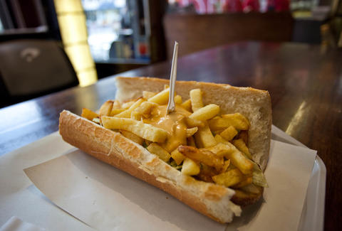 Sama seperti jambon beurre, mitraillette khas Belgia juga terbuat dari roti baguette.