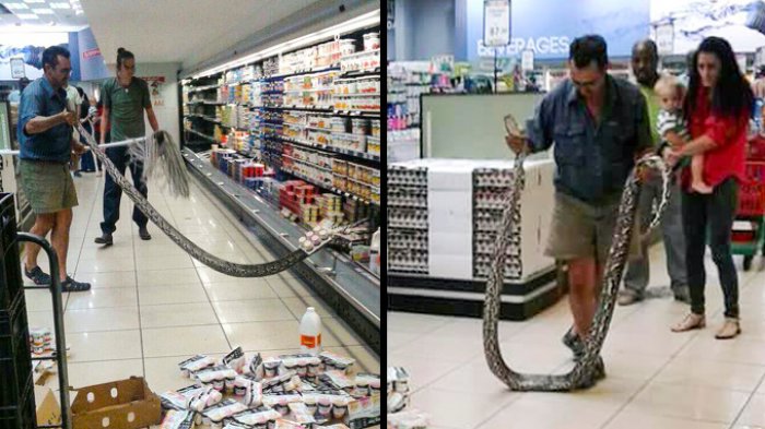 1. Seorang pria menemukan ular sepanjang 4 meter di rak supermarket Johannesburg, Afrika Selatan.
