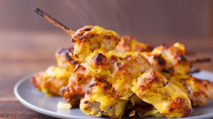 Tikka terbuat dari daging ayam yang diolesi bumbu dan dipanggang hingga matang sempurna.