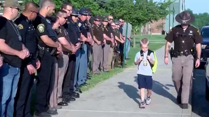 Semua polisi bertepuk tangan serta memberi Dakota semangat.