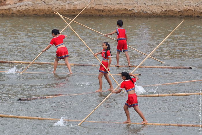 Olahraga yang populer di Provinsi Guizhou, China ini dilakukan di atas sebilah bambu.