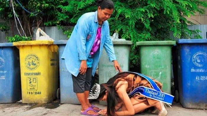 9. Setelah memenangkan Miss Thailand 2015, Khanittha Phasaeng kembali mengunjungi ibunya.