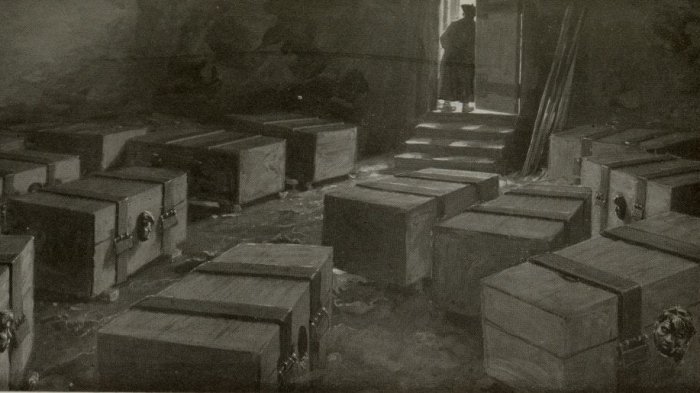 Kotak-kotak itu pada dasarnya adalah peti mati yang biasa disimpan dalam ruang bawah tanah yang gelap.